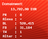 Der Seoanbieter SeoMoz ermittelt 452505 Backlinks von externen Seiten auf die Domain. Alexa zeigt 0 eingehende Backlinks an. Des Weiteren verzeichnet Seokicks insgesamt 0 Backlinks von 0 unterschiedlichen Domains mit 0 verschiedenen IP Adressen.