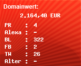 Bei Alexa wird diese Domain auf Platz 0 gelistet. Der Seoanbieter seoMoz hat für die Domain noch weitere Interessante Werte ermittelt. Dies wäre der MozRank mit 5.97/10, DomainAuthority mit 45/100 und PageAuthority mit 54/100. Der Sichtbarkeitsindex bei Sistrix beträgt 1,05.